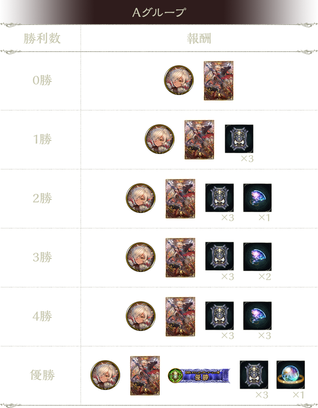 3勝:タイムスリップローテーションカードパックチケット 3枚、オーブの欠片 2個